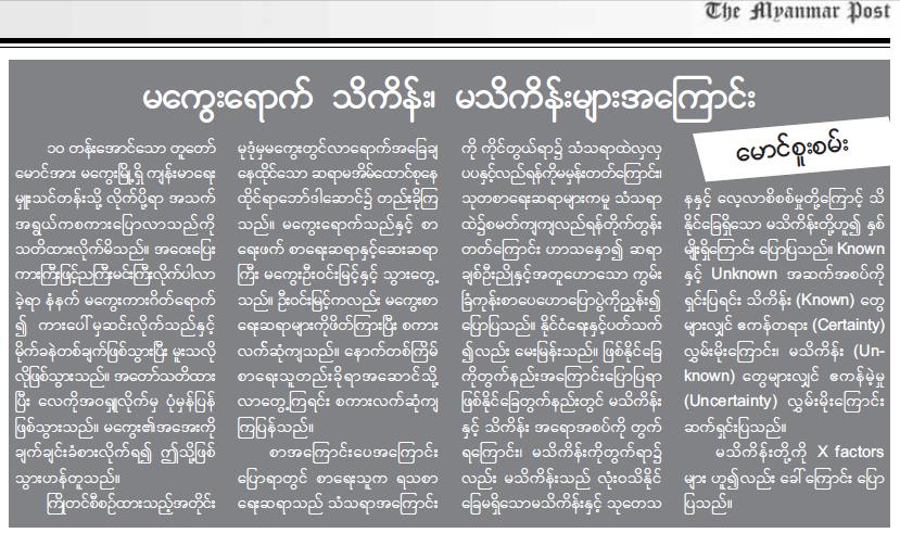 ဖတ္စရာ မ်ားလြန္းတ့ဲ ဒီေခတ္မွာ စာဖတ္ ေလာဘႀကီးသူေတြအတြက္ အဆင္ေျပေစမယ့္ အေရးအသား ျဖစ္တယ္လုိ ့ ထပ္ျပီး ေကာက္ခ်က္ခ်၊ ညႊန္းပါရေစ။