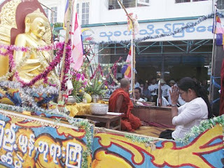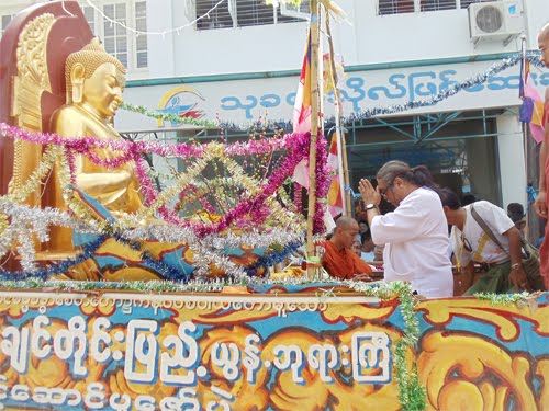 ရွစ္ေသာင္းေလးေထာင္ ဓမၼကၡႏၶာေစတီ ကိန္းဝပ္စံပယ္ေတာ္မူေသာ ပန္းေပါင္းစံု “လိုခ်င္တိုင္းျပည့္ ယြန္းဘုရားႀကီး” သည္ ၉ ရက္တိုင္တိုင္ ေဒသစာရီ လွည့္လည္ အပူေဇာ္ခံခ့ဲၿပီးသည့္ေနာက္ ယေန႔ ၉ ရက္ေျမာက္ေသာ ေန႔တြင္ ရန္ကုန္တိုင္း၊ ဒဂံုၿမိဳ႕သစ္ေျမာက္ပိုင္း၊ ၄၂ ရပ္ကြက္ ေမတၱာေခ်ာင္းကူးရပ္ရွိ ဝဋ္ေႂကြးေတာ္ေျပ ေစတီေတာ္ျမတ္ႀကီး တည္ရွိရာ ရန္ေအာင္ေျမေက်ာင္းတိုက္တြင္ ျပန္လည္၍ သီတင္းမသံုးခင္ နာေရးကူညီမႈအသင္း(ရန္ကုန္)သို႔ ႂကြခ်ီကာ အပူေဇာ္ခံခဲ့ပါသည္။
