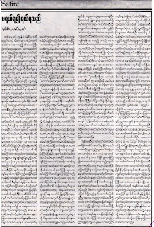မြန္စီယာဆီေညာ္ရဲ႕ မရယ္ရလုိ႕ရယ္ရတယ္.. ဆုိတဲ့ မၾကာမၾကာ ပါလာတတ္တဲ့ Satire ေဆာင္းပါးဗ်..။ ခရီးသြားဟန္လႊဲ.. ၾကံဳသမွ်ေလးေတြကုိ သေရာ္စာသေဘာနဲ႕ နတ္သံေႏွာထားတာ ပါ.။ ကြမ္းတံေတြးေတာင္ အသံထြက္နဲ႕ ေထြးထားတယ္ဗ်..။ အၾကိဳက္ညီသူေတြ ရွိနုိင္တာမုိ႕ ထည့္ေပး လုိက္ပါတယ္။ ျမည္းၾကပါဦး..။