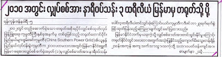 တတုိင္းျပည္လုံးက်ေတာ့ လွ်ပ္စစ္မီးကုိ ျပတ္တလွည့္ လပ္တလွည့္ ေပးထားျပီး.. တရုတ္ျပည္ကုိက် မီး ေရာင္းစားသတဲ့..။ အလုိေလး.. လွ်ပ္စစ္အား နာရီ၀ပ္ သန္း ၃ ထရီလီယံတဲ့ ဗ်ာတုိ႕.. တရုတ္ကသာ မေဖၚရင္.. ကုိယ္တုိ႕ဘာမွ သိမွာဟုတ္ဘူးဗ်..။ ေျပာၾကလိမ့္မယ္.. သူတုိ႕ဟာသူတုိ႕ ထုတ္တာပါလုိ႕ေလ.. ဘယ္က အရင္းအျမစ္ေတြနဲ႕တုန္း.. ရတဲ့ေငြေတြကုိ ဘာေတြ သုံးစြဲပစ္သတုန္း..။