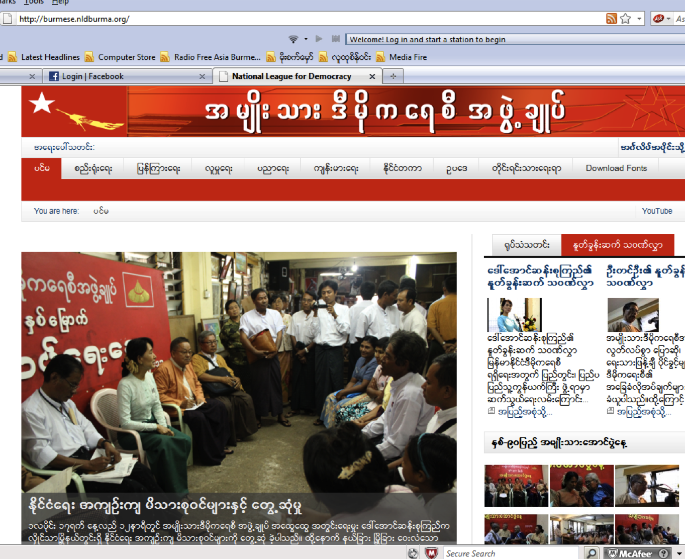 အမ်ိဳးသားဒီမိုကေရစီ အဖြဲ႕ခ်ဳပ္၏ ပထမဆံုးကိုယ္ပိုင္ ၀က္ဆိုက္ကို ယေန႔ညေနတြင္ လႊင့္တင္ခဲ့သည္ဟု ရန္ကုန္ၿမိဳ႕မွ အင္တာနက္သံုးစြဲသူမ်ား၏ ေျပာဆိုခ်က္အရ သိရွိရပါတယ္။ ၀က္ဆိုက္လိပ္စာမွာ www.nldburma.org ျဖစ္ၿပီး ျမန္မာ ၊ အဂၤလိပ္ ႏွစ္ဘာသာျဖင့္ လႊင့္တင္ထားသည္ကို ေတြ႕ရပါတယ္။ ျမန္မာလိပ္စာမွာ Burmese.NLDBurma.org လိုု႔ ဆိုုပါတယ္။