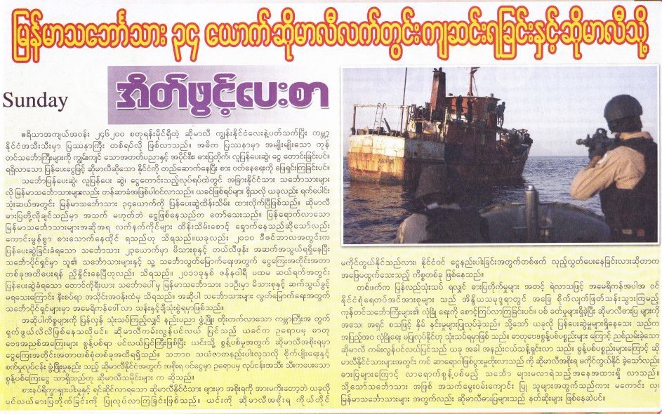 ငနဲသား ပင္လယ္ဓားျပတုိ႔အေၾကာင္း ေရးထားတ့ဲ ေဆာင္းပါး။
