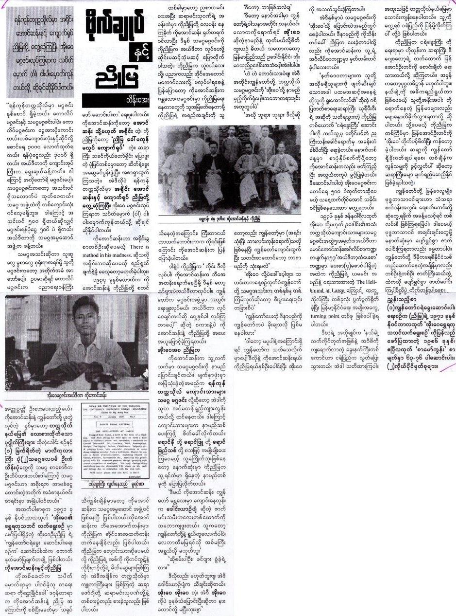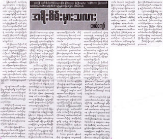 အရမ္းေကာင္းတ့ဲ ေဆာင္းပါးပါ။ ကုိယ္ပုိင္မွတ္စုေတြနဲ႔ အုိးေ၀ညိဳျမရဲ႕ ေဆာင္းပါးတပုဒ္ကုိ ကုိးကားထားတယ္လုိ႔ ဆုိပါတယ္။