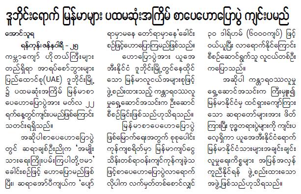 ဒူဘုိင္းကုိလည္း ျမန္မာစာေရးဆရာေတြ သြားေဟာမည္