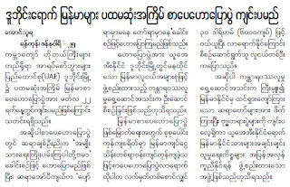 “ျမန္မာသေဘၤာသားမ်ားလည္း တန္ဆာခံ” ျဖစ္လာျပီလုိ႔ ေရးထားတာေၾကာင့္ ျပဳံးစရာ ျဖစ္ေနပါတယ္။ ဘယ္ေဆာင္းပါးကုိ ကုိးကားတယ္ ဆုိတာပါ ေဖာ္ျပမထားပါဘူး။