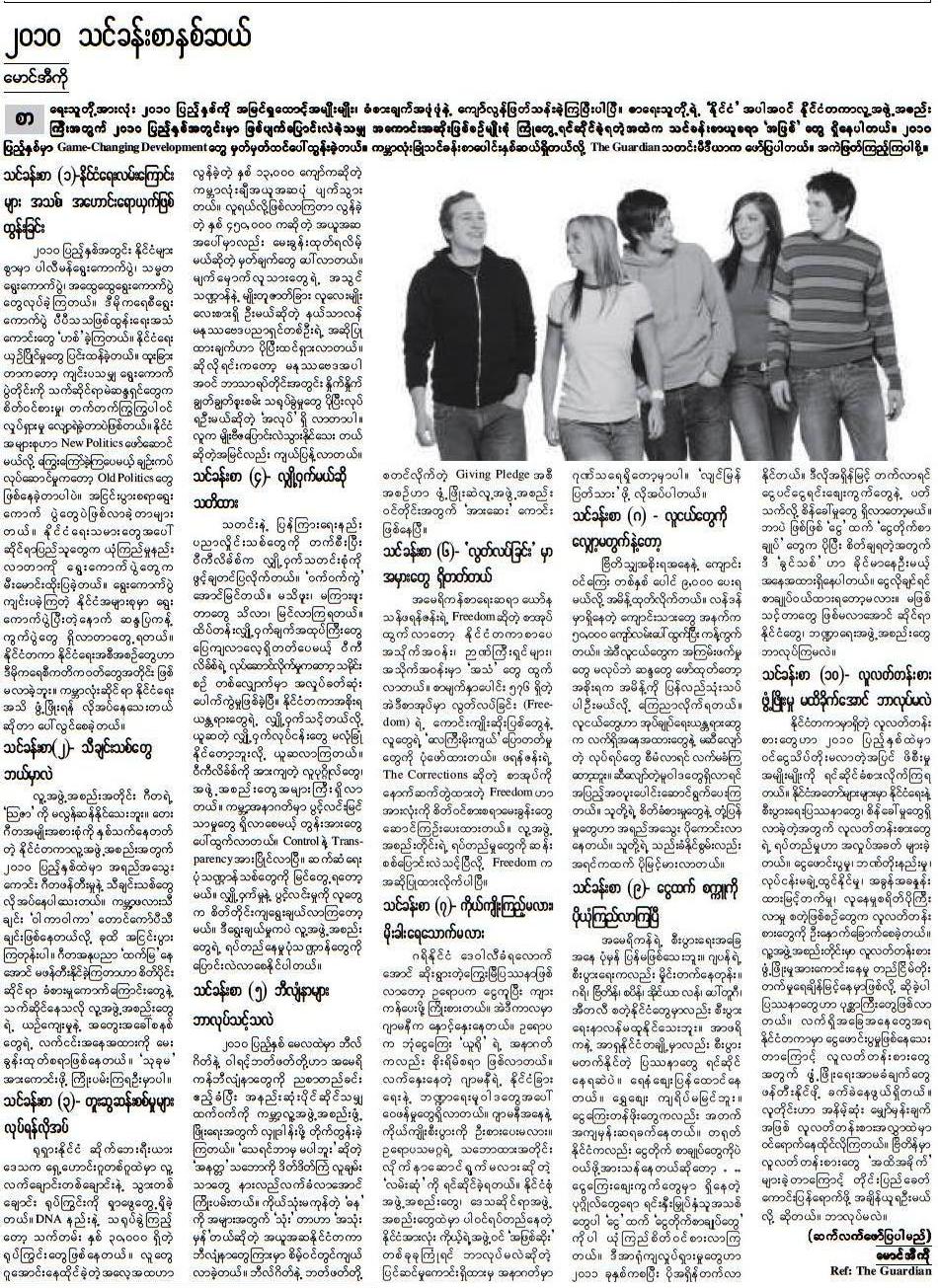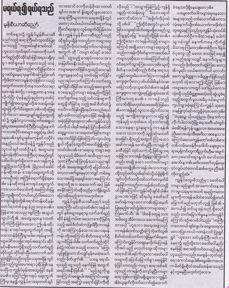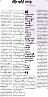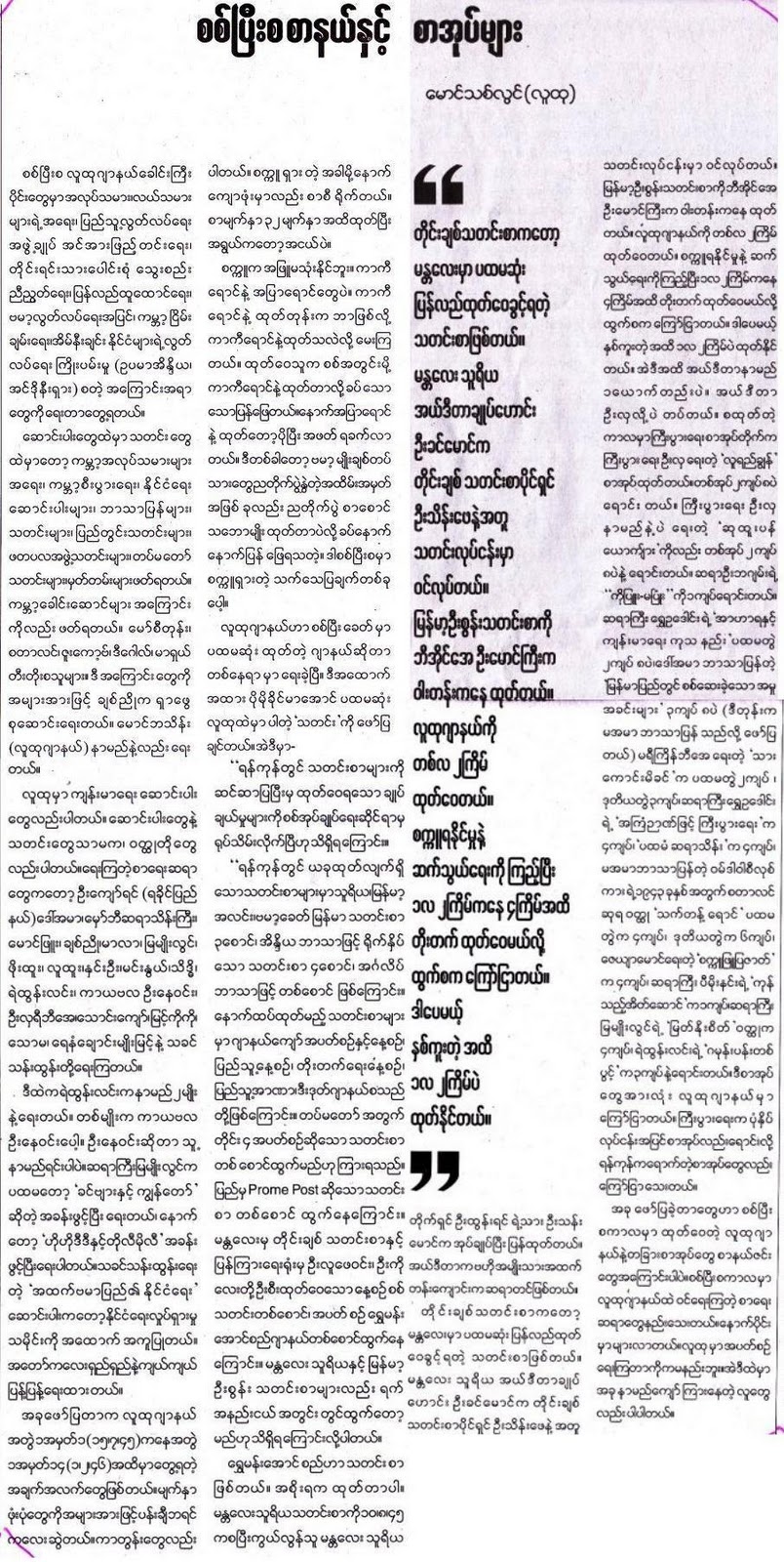 စာေပစိစစ္ေရး ဌာန ဆုိတ့ဲ မေကာင္းဆုိး၀ါးဟာ ေရွးကတည္းက ရိွခ့ဲတယ္၊ စစ္ျပီးေခတ္မွာေတာ့ သတင္းစာေတြကုိ လြတ္လပ္ခြင့္ ေပးခ့ဲတယ္ ဆုိတ့ဲအေၾကာင္းကုိ ဒီေဆာင္းပါး တေနရာမွာ ေတြ႔ရပါတယ္။ ဒုတိယေကာ္လံမွာပါ။