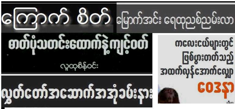 ေခါင္းစဥ္က အူေၾကာင္ေၾကာင္ ျဖစ္သြားတယ္။ မတတ္ႏုိင္ဘူး။ ဒီေန႔ လက္တုိ႔မယ့္ သတင္း ေဆာင္းပါး ျဖတ္စေတြကုိ 7DAY ျပီးေတာ့ TRUE နဲ႔ VOICE ဂ်ာနယ္ ေတြကေန ယူတာမုိ႔ အဲဒီလုိ တပ္လုိက္တာပါ။ ကဲ – ဖတ္ ေဗတုိးေဗ။