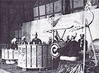 ေျမဝိုင္းဇာတ္ပြဲေခတ္မွာ ဆိုင္းဝိုင္းႀကီးက ပရိသတ္ဘက္ကို လွည့္ထားပါတယ္။ ဇာတ္ပြဲကျပသူေတြက ဆိုင္းဝိုင္းႀကီးေရွ႕မွာ ကၾကတယ္။ ႐ုပ္ေသးစင္ကေတာ့ အဲဒီကတည္းက စင္ျမင့္ေပၚမွာဆိုေတာ့ အျမင့္သဘင္ လို႔ေခၚပါတယ္။