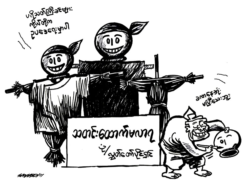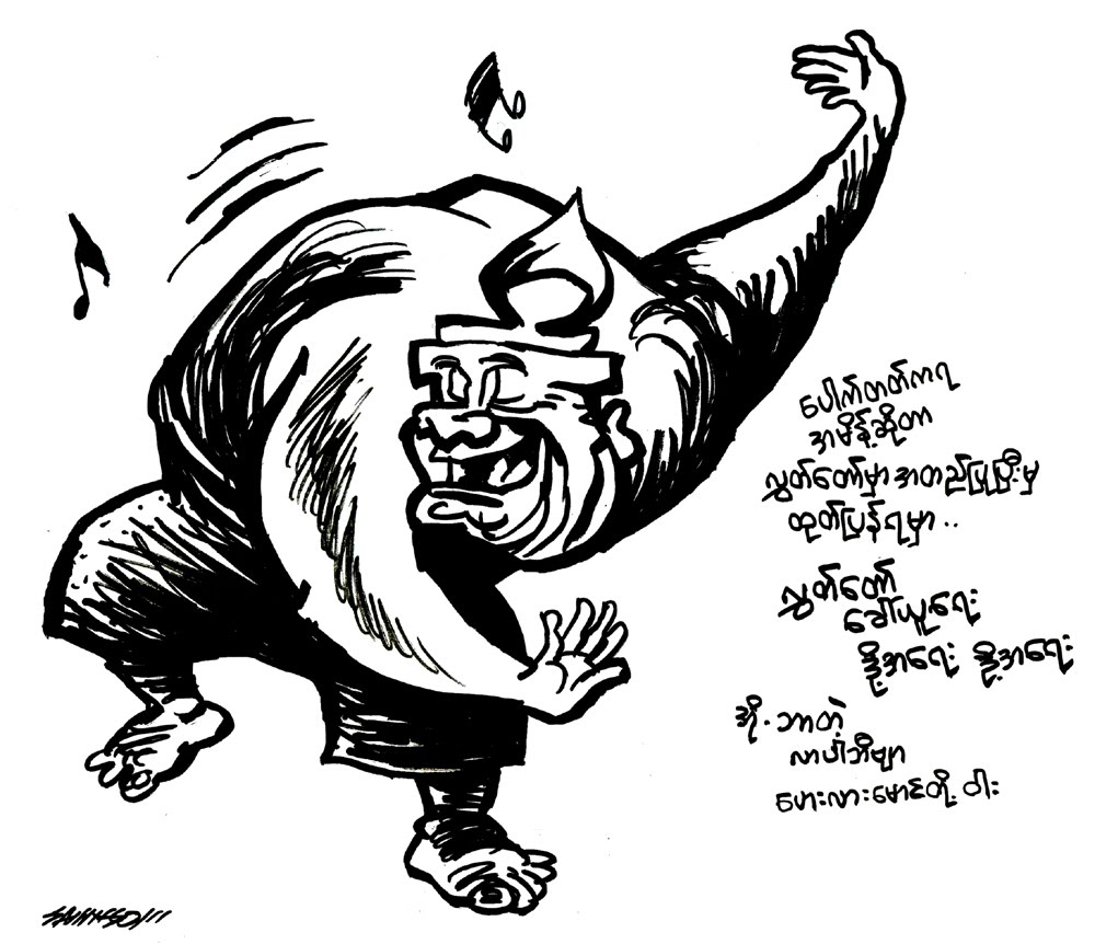 “ဘယ္ ႏွယ္႔ ဗ်ာ.. နိုင္ငံေတာ္ ဘတ္ဂ်က္ အသံုးစာရင္း တဲ႔..။ ကာကြယ္ေရး အသံုးစရိတ္ေတြက် ထင္တိုင္း သံုး ထား လိုက္ တာ…။ ဘယ္သူမွ စစ္ေဆး ေမးျမန္းခြင္႔ မရွိ တဲ႔…။ သူ႔ အေမ႔လင္ ပိုက္ဆံသံုးေနတာ က်ေနတာပဲ”