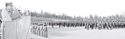 ေနျပည္ေတာ္တုိင္း စစ္ဌာနခ်ဳပ္က စစ္ေရးျပပဲြမွာ သတင္းစာထဲကဟာေတြ ဖတ္ျပေနတ့ဲ ဗုိလ္မွဴးခ်ဳပ္ေမာင္ေမာင္ေအး