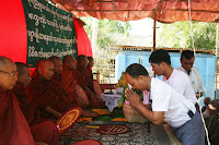 ယင္းလွဴဒါန္းပြဲအား ၂၀.၃.၂၀၁၁ တြင္ ၿမိဳ႕နယ္သံဃာေတာ္/ ဆရာေတာ္မ်ားႏွင့္ ေဒသခံရြာသူ/သားမ်ားေရွ႕တြင္ ေရစက္သြန္းခ် လွဴဒါန္းအပ္ႏွံပြဲ က်င္းပခဲ့ပါသည္။ ကုန္က်ေငြ စုစုေပါင္း ၁၁၃ သိန္းက်ပ္အား “အမ်ားျပည္သူအတြက္ အမ်ားျပည္သူေကာင္းမႈ နာေရးကူညီမႈအသင္း(ရန္ကုန္)” ဟူ၍ ကဗၺည္းတင္ ထား႐ိွခဲ့သည္။ ထို႔ျပင္ နတ္ေမာက္ၿမိဳ႕နယ္ ေဂြးခ်ဳိေက်း႐ြာ(ပင္း)႐ွိ အမ်ားျပည္သူ မ်ဳိးဆက္သစ္ လူငယ္တို႔အတြက္ ဖြင့္လွစ္ထားေသာ “တက္ေနဝန္း” စာၾကည့္တိုက္အတြက္ နာေရးကူညီမႈအသင္း (ရန္ကုန္)႐ွိ “သုခအလင္း” စာၾကည့္တိုက္မွ စာအုပ္စာေပ၊ စာေစာင္မ်ားကိုလည္း လွဴဒါန္းေပးခဲ့ၿပီး ျဖစ္သည္။ ဆက္လက္၍ နတ္ေမာက္ၿမိဳ႕နယ္အတြင္း႐ွိ ေတာင္ဦးေက်း႐ြာ အိမ္ေျခ ၄၀၀ ေက်ာ္၊ ေက်ာင္းကုန္းေက်း႐ြာ အိမ္ေျခ ၁၂၀ ေက်ာ္တို႔တြင္ ေရတူးေဖာ္မႈ အလွဴဒါနအား ေဆာင္႐ြက္လွ်က္႐ွိသည္။