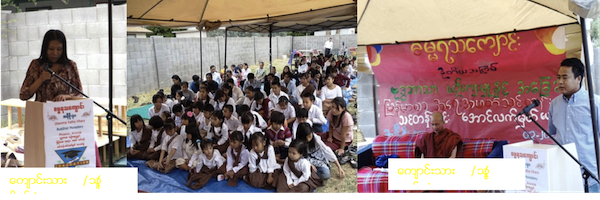 ေက်ာင္းသား/သူ ( ဖခင္ ) ။ ။ ယခုသင္တန္းမွာ အျပင္ပန္းအျမင္အရ ေသးေပမဲ့ အႏွစ္သာရပိုင္း အရေတာ့ ႀကီးမားလွပါတယ္။ စာေပ ယဥ္ေက်းမႈႏွင့္ ဘာသာတရားကို သိျခင္းျဖင့္ မိမိတို႔လူမ်ဳိးကို ခ်စ္တတ္သည့္ စိတ္မ်ား ေမြးဖြား လာႏိုင္ပါတယ္။