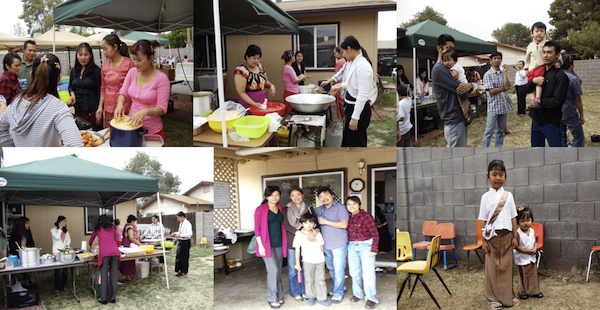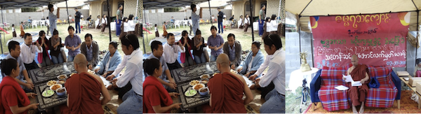 ေန႔လည္ (၁) နာရီတြင္ ႂကြေရာက္လာသည့္ ဧည့္ပရိတ္သတ္ အေပါင္းက ဗုဒၶသာသနံ စိရံ တိ႒တု(ဗုဒၶသာသနာ အဓြန္႔ရွည္ပါေစ) သုံးႀကိမ္႐ြတ္ဆို၍ အခမ္းအနားကို ပိတ္ၿပီးေနာက္၊ အလွဴရွင္မ်ားက ႂကြေရာက္လာသည့္ ဧည့္ပရိတ္သတ္အေပါင္းအား မုန္္႔ဟင္းခါး၊ ေခါက္ဆြဲေၾကာ္/ သုပ္၊ အေၾကာ္စုံ၊ စသည့္ တႏိုင္တပိုင္ ျမန္မာ့စားၿမိန္ဖြယ္မ်ားႏွင့္ ႏိုင္ငံတကာ မုန္႔ မ်ဳိးစုံတို႔ျဖင့္ ေႂကြးေမြးဧည့္ခံပါသည္။