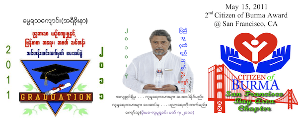 ေက်ာင္းဆင္းပြဲတြင္ လုပ္အားေပးေနၾကေသာ ျပည္သူ႔ဂုဏ္ရည္(အရီဇိုးနား) လုပ္အားေပးမ်ားထံသို႔လည္း ေက်ာင္းဆင္းပြဲလာ ပရိတ္သတ္မ်ားက ၂ဝ၁၁ ခုႏွစ္ ေမလ ၁၅ ရက္ေန႔တြင္ ကယ္လီဖိုးနီးယားျပည္နယ္ ဆန္ဖရန္စစၥကို(ေဘးဧရိယာ)၌ က်င္းပမည့္ ျပည္သူ႔့ဂုဏ္ရည္ (Citizen of Burma Award) ဆု ဒုတိယအႀကိမ္ ေရြးခ်ယ္ေပးအပ္ဂုဏ္ျပဳပြဲအတြက္ အလွဴေငြ ၂ဝ၂ ေဒၚလာကို ေပးအပ္လွဴဒါန္းသြားၾကပါသည္။