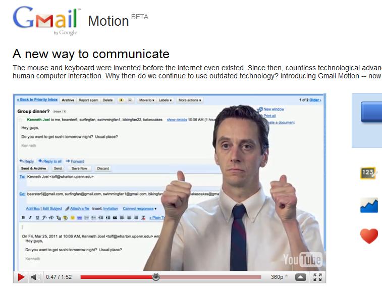 “Gmail ကုိ လက္ဟန္ေျခဟန္နဲ႔ သုံးလုိ႔ ရျပီ ကီးဘုတ္၊ ေမာက္စ္ ကုိင္စရာ မလုိဘူး” ဟူေသာ ၎တုိ႔၏ တီထြင္ခ်က္ကုိ ၂ မိနစ္ခန္႔ ရွင္းျပေသာ ျပကြက္ျဖစ္သည္။