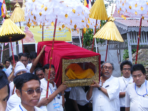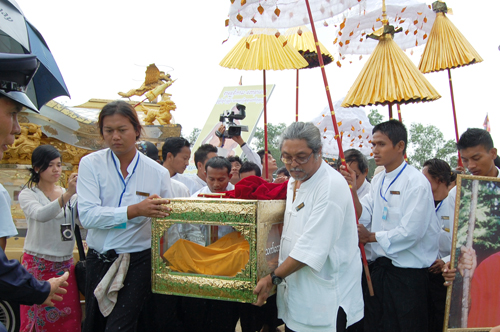 ၁.၄.၂၀၁၁ (ေသာၾကာေန႔) မြန္းလြဲ ၁း၀၀ နာရီအခ်ိန္တြင္ အႏိၲမအဂၢိစ်ာပနသဘင္ ဆင္ယင္ က်င္းပခဲ့ရာ နာေရးကူညီမႈအသင္း(ရန္ကုန္)မွ အသင္းသူ/သားမ်ားသည္ ေအာင္မင္းေခါင္ေစတီ၊ ဓာတ္ေပါင္းစံုေက်ာင္းတိုက္မွ ႐ုပ္ကလာပ္ေတာ္အား ျပည္တြင္း/ပမွ တပည့္ဒါယကာ ဒါယကာမမ်ား၊ ဆရာေတာ္ သံဃာေတာ္မ်ားႏွင့္အတူ ေရေဝးသုႆန္သို႔ ပင့္ေဆာင္ေလာင္တိုက္သြင္း၍ မီးသၿဂႋဳလ္ အခမ္းအနားအား စည္ကားသိုက္ၿမိဳက္စြာျဖင့္ က်င္းပျပဳလုပ္ခဲ့သည္။