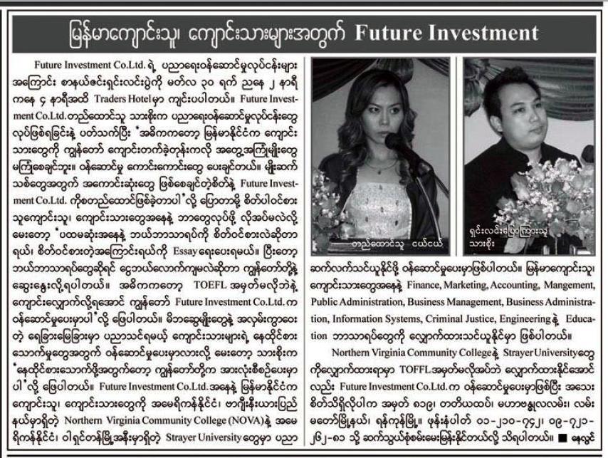 ျမန္မာေက်ာင္းသားမ်ားကုိ အေမရိကန္ ပုိ႔မည္