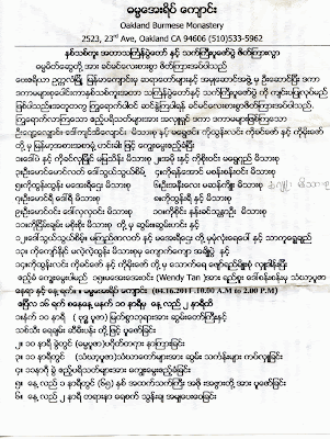>Oakland Burmese Monastery Invitation to Thagyan