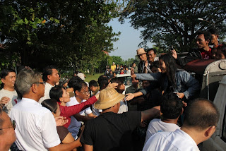 ကန္ေတာ့ပဲြေရာက္ ပရိသတ္ကုိ စကားေျပာေနပုံ