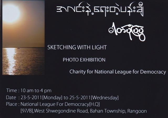 အမ်ိဳးသားဒီမိုကေရစီအဖြဲ႔ခ်ဳပ္ သတင္းႏွင့္ျပန္ၾကားေရးဌာနႏွင့္ျပင္ပဓါတ္ပံုအႏုပညာရွင္မ်ား၏ ပူးေပါင္းေဆာင္ ရြက္မႈအျဖစ္ “အလင္းႏွင့္ ေရးတဲ့ပန္းခ်ီ” (Sketching with Light) ဓာတ္ပံုျပပြဲကို ပထမဆံုးအႀကိမ္ အျဖစ္ ေမ လ ၂၃ ရက္ေန႔မွ ေမလ ၂၅ ရက္ေန႔ထိ အမ်ဳိးသားဒီမိုက ေရစီအဖြဲ႔ခ်ဳပ္၊ ဌာနခ်ဳပ္ခန္းမတြင္ က်င္းပသြားမည္ျဖစ္ သည္။