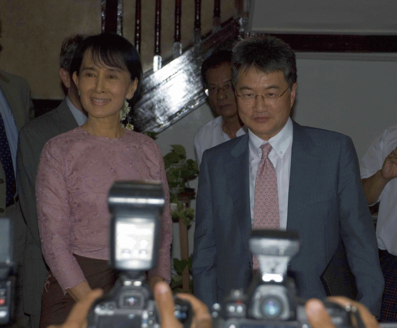 ျမန္မာ့ ဒီမိုကေရစီ အေရး ႏွစ္ႏိုင္ငံ အစိုးရမ်ားအၾကား ေဆြးေႏြးအျမင္ခ်င္း ဖလွယ္ရန္ႏွင့္ ျမန္မာႏိုင္ငံေရး ေခါင္းေဆာင္မ်ားအား ေတြ႕ဆံုရန္အတြက္ ယမန္ေန႔က ေရာက္ရွိလာသည့္ အေမရိကန္ႏိုင္ငံ ႏိုင္ငံျခားေရးဌာန ပစိဖိတ္ႏွင့္ အေရွ႕အာရွေရးရာ ဒုလက္ေထာက္ ၀န္ႀကီး ဂ်ိဳးဆက္ယြန္ ယေန႔ညေနပိုင္းက ျမန္မာ့ ဒီမုိကေရစီေခါင္းေဆာင္ ေဒၚေအာင္ဆန္းစုၾကည္ႏွင့္ ေတြ႕ဆံုခဲ့သည္။
