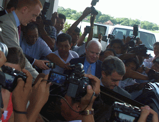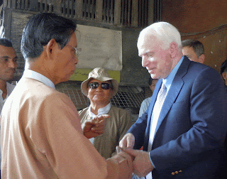 ျမန္မာႏိုင္ငံ သို႔ ၃ ရက္ၾကာ ခရီးစဥ္အျဖစ္ လာေရာက္သည့္ အေမရိကန္ အထက္လႊတ္ေတာ္အမတ္ ဂၽြန္မက္ကိန္းသည္ ယေန႔ညေန ၃နာရီ ၅၀ မိနစ္တြင္ ျမန္မာ့ ဒီမိုကေရစီေခါင္းေဆာင္ေဒၚေအာင္ဆန္းစုၾကည္ ႏွင့္ တကၠသိုလ္ရိပ္သာ လမ္းေနအိမ္တြင္ ေတြ႕ဆံုေဆြးေႏြးခဲ့ၾကသည္။
