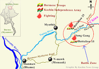 (သရုပ္ေဖာ္ပုံ – ကခ်င္သတင္းစဥ္၀က္ဆုိက္က လက္ရွိတိုက္ပြဲနယ္ေျမမ်ား သရုပ္ေဖာ္ပုံ)
