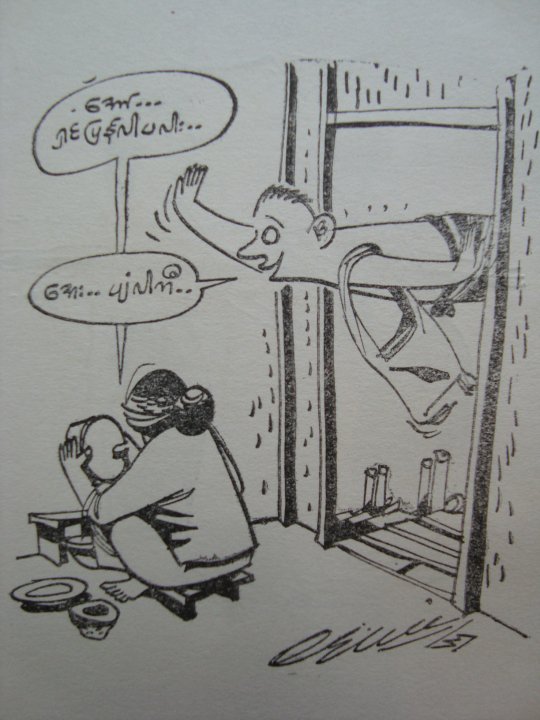 လြန္ခ့ဲသည့္ အႏွစ္ ၅၀ ခန္႔က လူထုသတင္းစာတြင္ ထည့္သြင္းေဖာ္ျပခ့ဲေသာ ကာတြန္းျဖစ္သည္။