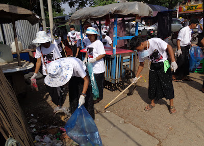နာေရးကူညီမႈအသင္း(ရန္ကုန္)မွ ယခုကဲ့သို႔ အမႈိက္မ်ား လိုက္လံေကာက္ေနျခင္းသည္ အခ်ိန္မ်ား ပိုလွ်ံေန၍ အပိုအလုပ္လုပ္ေနျခင္းမဟုတ္။ ႏိုင္ငံေတာ္အစိုးရမွ ႏိုင္ငံပိုင္မီဒီယာမ်ားမွတဆင့္ စည္းကမ္းမဲ့စြာ အမိႈက္ပစ္ျခင္းကို အသိပညာေပးလုပ္ငန္းမ်ား ေဆာင္ရြက္လာခဲ့သည္မွာ ဆယ္စုႏွစ္ အေတာ္ေတာ္မ်ားမ်ား ေက်ာ္လြန္လာခဲ့ၿပီျဖစ္ေသာ္လည္း ထူးထူးျခားျခား တိုးတက္ေျပာင္းလဲ ထိေရာက္မႈမရွိခဲ့ေပ။ ယခုကဲ့သို႔ ေသာ လူအမ်ားတို႔၏ ယံုၾကည္အားကိုးအားထားျပဳေနေသာ အသင္းအဖြဲ႔တစ္ခုမွ အမႈိက္ေကာက္ျခင္းကို ျမင္ေတြ႔ရေသာ ျပည္သူတစ္ဦး၏ အသိအျမင္သည္ စည္ပင္သာယာမွ ဝန္ထမ္းတစ္ဦး ပင္ပန္းႀကီးစြာ အမိႈက္သိမ္းေနသည္ကို ျမင္ေနေသာအသိအျမင္ႏွင့္ ကြာျခားလွပါသည္ဆိုလွ်င္ မိဘျပည္သူအမ်ားစုက လက္ခံၾကလိမ့္မည္ထင္ေပသည္။ ထိုကဲ့သို႔ေသာ မတူကြဲျပားသည့္ အေတြးအျမင္မ်ား ျပည္သူမ်ားထံတြင္ ရွိေနသည္ကို ကၽြန္ေတာ္တို႔ ပထမဦးဆံုးအမႈိက္ေကာက္သည့္ေန႔မွာပင္ မ်က္ဝါးထင္ထင္ ေတြ႔ျမင္ခဲ့ရပါ သည္။ ထိုသည္ကား ျပည္သူခ်စ္ေသာ ျပည္သူ႔အက်ိဳးျပဳ လူမႈအဖြဲ႔အစည္းမ်ားအေပၚတြင္ အမ်ားျပည္သူ တို႔၏ ယံုၾကည္မႈကို ျပသလိုက္ျခင္းပင္ျဖစ္သည္။ ထို႔ေၾကာင့္ မိမိတို႔ေနထိုင္ရာ ရန္ကုန္ၿမိဳ႕ေတာ္ႀကီးမွ အစျပဳ၍ ျမန္မာႏိုင္ငံတဝွမ္းတြင္ ရွိၾကကုန္ေသာ လူမႈအဖြဲ႔အစည္းမ်ားႏွင့္ ႏိုင္ငံေရးအဖြဲအစည္းအသီးသီး တို႔သည္လည္း မိမိတို႔ေနထိုင္ရာ ေနရာေဒသအသီးသီးတို႔တြင္ အမိႈက္မ်ားအား စနစ္တက်စြန္႔ပစ္၍ အ မိႈက္ကင္းစင္ေသာ ၿမိဳ႕ေတာ္မ်ားျဖစ္လာေစရန္ ဤကဲ့သိုေသာ သဘာဝပတ္ဝန္းက်င္ထိန္းသိမ္းေရးႏွင့္ သန္႔ရွင္းေရးလုပ္ငန္းရပ္အား ပူးေပါင္းပါဝင္၍ လုပ္ေဆာင္ၾကမည္ဆိုပါက မၾကာမီအခ်ိန္ကာလတြင္ မိမိတို႔ ေနထိုင္ရာတြင္ အမိႈက္ကင္းစင္မည္ မလြဲေပ။