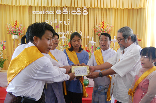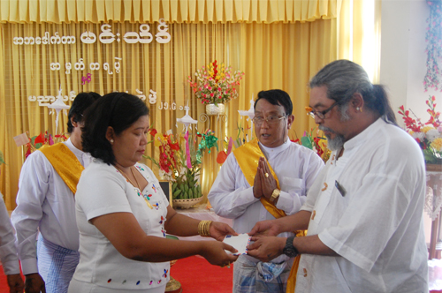 ၂၅.၆.၂၀၁၁ စေနေန႔၊ နံနက္ ၉း၀၀ နာရီအခ်ိန္တြင္ ေျမာက္ဒဂံုၿမိဳ႕နယ္၊ မဟာၿမိဳင္အိမ္ရာ အတြင္းရွိ သႏိၲသုခသာသနာ့ဗိမာန္ေတာ္ႀကီး၌ ကြယ္လြန္သူ အဘေဒါက္တာ မင္းသိခၤ၏ေမြးေန႔ ၇၃ ႏွစ္ေျမာက္အမွတ္တရပြဲႏွင့္ ပညာသင္ေထာက္ပံ့ပြဲ အခမ္းအနား၌ နာေရးကူညီမႈအသင္း(ရန္ကုန္) အတြက္ အလွဴေငြေပးအပ္ျခင္းကို က်င္းပျပဳလုပ္ခဲ့ပါသည္။