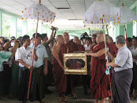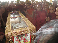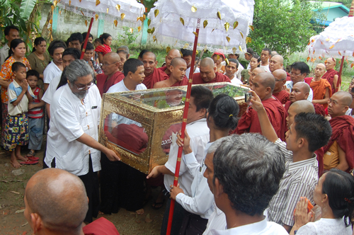 တခ်ိန္တည္း၌ တာေမြၿမိဳ႕နယ္၊ ေအာင္မဂၤလာရပ္ကြက္ မဂၤလာသုခပါ႒ိတကၠသိုလ္ ဘဒၵႏၲ သုႏၵရ သက္ေတာ္ (၇၅)၊ ဝါေတာ္ (၅၅) ဝါ သည္ ၂၁.၆.၂၀၁၁ အဂၤါေန႔ည ၂၃း၀၀ နာရီအခ်ိန္တြင္ ဘဝနတ္ထံ ပ်ံလြန္ေတာ္မူသြားပါ၍ ယေန႔ ၂၅.၆.၂၀၁၁ စေနေန႔ မြန္းလြဲ ၁း၀၀ နာရီအခ်ိန္တြင္လည္း နာေရးကူညီမႈအသင္း(ရန္ကုန္)မွ ဆရာေတာ္ႀကီး၏ ပံုေတာ္တင္ ေရွ႕ေျပးေမာ္ေတာ္ယာဥ္ႏွင့္ အထူး နိဗၺာန္ယာဥ္ႀကီးတို႔ျဖင့္ အသင္းသားမ်ား အုပ္စု ၂ စုခြဲကာ ဝိုင္းဝန္းကုသိုလ္ယူ ပင့္ေဆာင္ကာ အႏိၲမ စ်ာပနအခမ္းအနားအား တၿပိဳင္နက္တည္း ေရေဝးသုႆန္၌ က်င္းပျပဳလုပ္ခဲ့ပါသည္။