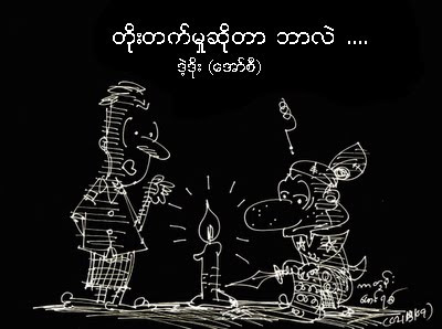 ကေလးေတြ ပညာေရးကိစၥေမးၾကည့္ေတာ့လဲ ဘာမွ မသိ။ ထူးရွယ္ေဆး႐ုံႀကီးေတြ ဟိန္းေနတာဘဲေျပာလို႔ လူထုက်မၼာေရးေစာင့္ေရွာက္မႈ ေမးၾကည့္ေတာ့လဲ … ပိုက္ဆံရွိရင္ကုရတာလြယ္တယ္ေလတဲ့။ အင္း … ေတာ္ လိုက္ပုံမ်ား။ သတင္းစာဖတ္ခဲ့လား… ဘာေတြေရးထားလဲ ေမးေတာ့ ၀န္ႀကီးေတြ အလုပ္မ်ားေနတဲ့သတင္းေတြ ဘဲတဲ့ …။ ဘာေတြအလုပ္မ်ားေနလဲေမးေတာ့… ဟိုဖြင့္ပြဲသြား၊ ဒီဖြင့္ပြဲသြား။ ဟိုလိုက္ၾကည့္၊ ဒီလိုက္ၾကည့္ တာေတြဘဲ။