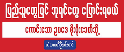 ဒီေတာ့မွ က်ဳပ္လည္း ေမ့ရာကလန္႔ႏိုးသလို အေမာတၾကီးေျပာမိတယ္။ ေအး ဟုတ္တာေပါ့။ အေျခခံျပင္ဆင္ေရးလူထုလႈပ္ရွားမႈေတြက အခုအခ်ိန္ေလာက္ ကတည္းက စၾကရာမွာေပါ့။ ၂၀၁၅ လြန္အထိ ဘယ္ေစာင့္ေနႏုိင္ လိမ့္မတံုး။ အေျခခံဥေပေဒျပင္ေရး လူထုရွင္းပြဲေတြ၊ ေဟာပြဲေတြ၊ ေတာင္းပြဲေတြ ေပါင္းလန္ေအာင္ လုပ္ၾကရမွာေပါ့။
