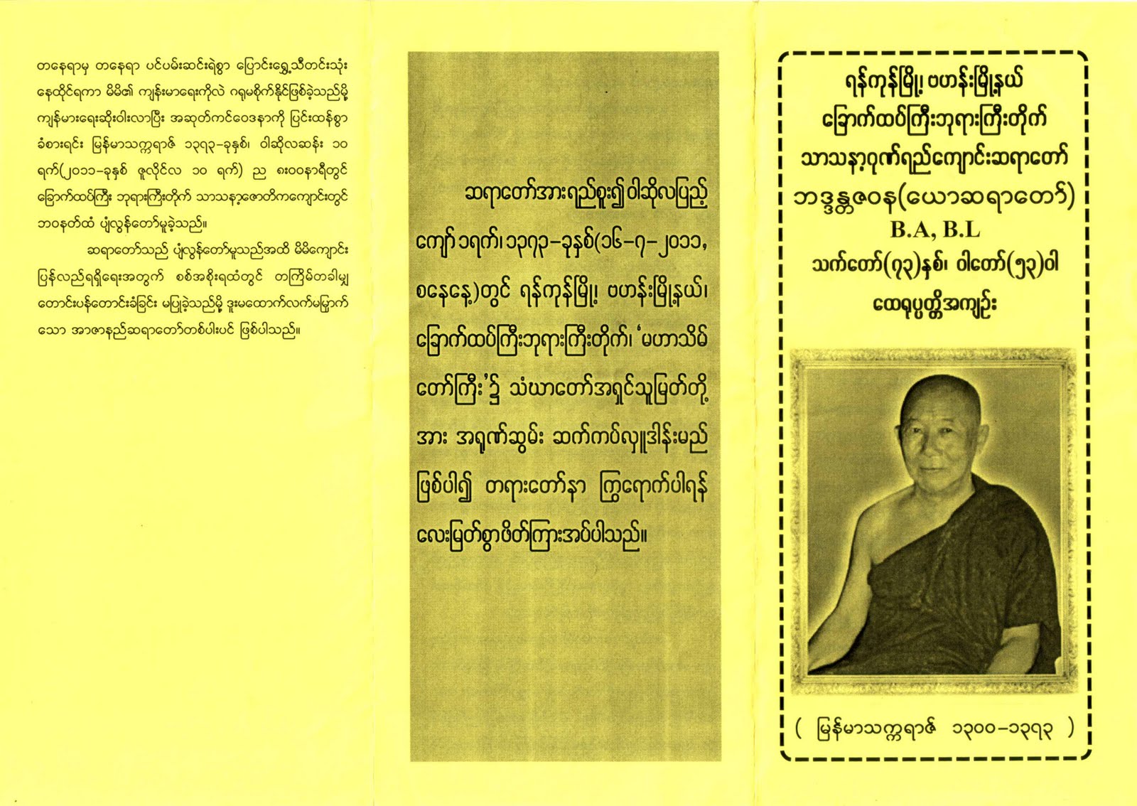 ၈၈ မ်ိဳးဆက္ေက်ာင္းသားေတြဦးေဆာင္က်င္းပတဲ့ ရွစ္ေလးလံုး ႏွစ္ပတ္လည္အခမ္းအနားေတြကို ဆရာေတာ္ေ က်ာင္း ထိုင္ရာ သာသနာ့ ဂုဏ္ရည္ေက်ာင္းတိုက္မွာ လက္ခံက်င္းပခြင့္ျပဳခဲ့တဲ့၊ ေရႊဝါေရာင္ ေတာ္လွန္ေရးမွာ တက္ႂကြစြာ ဦးေဆာင္ပါဝင္ခဲ့တဲ့ ဆရာေတာ္ ဘဒၵႏၱဇဝန (ေယာဆရာေတာ္) ဟာ ၁ဝ၊ ၇၊ ၂ဝ၁၁ (တနဂၤေႏြေန႔) မွာ ကင္ဆာေရာဂါနဲ႔ ဘဝနတ္ထံပ်ံလြန္ေတာ္မူခဲ့ပါတယ္။