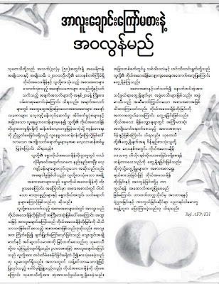 ဒါလည္း ျပည့္တန္ဆာလုပ္ငန္းနဲ႔ ဆက္ႏြယ္တ့ဲ သတင္း။ျပည္ပသတင္းဌာနေတြ ဂုဏ္ယူစရာပါ။ ခင္ဗ်ားတုိ႔ကုိ အားကုိးသူေတြထဲမွာ ရဲေတြလည္း ပါတယ္ ဆုိပဲ။ ဒီသတင္းကုိသာ ဖတ္ပါဗ်ာ၊ ရွင္းသြားမွာပါ။