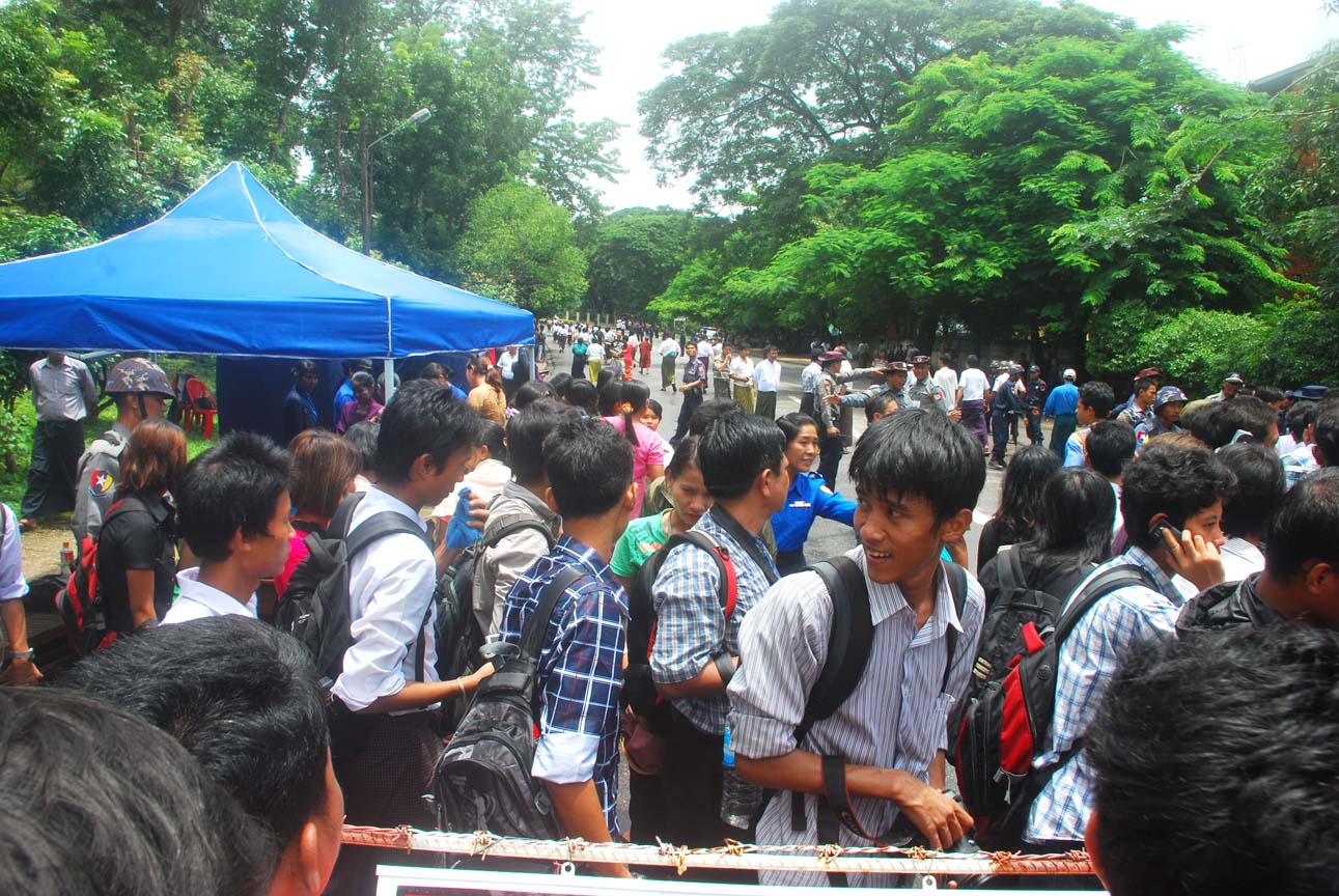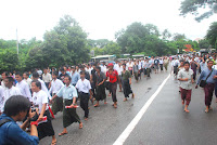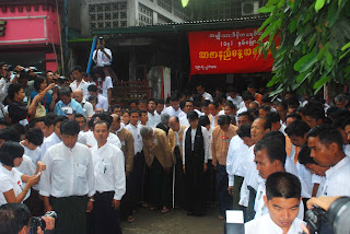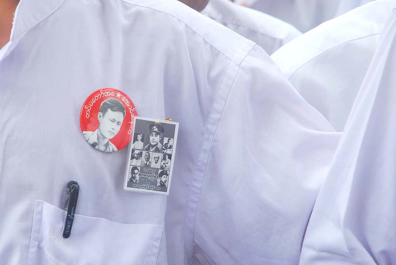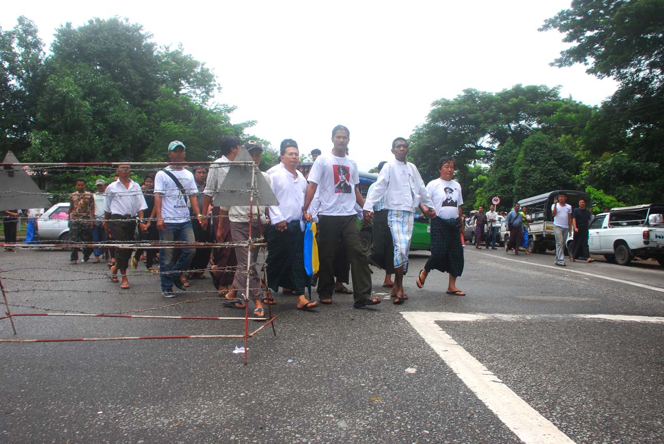 အင္န္အယ္ဒီ ရုံးခ်ဴပ္ေရွ႔မွာ နံနက္ ၈ နာရီေလာက္က စျပီး အင္န္အယ္ဒီပါတီ၀င္ေတြ အာဇာနည္ေန႔ အခမ္းအနားကို လာေရာက္နားေထာင္တဲ့ လူထုပရိသတ္ေတြနဲ႔ တျဖည္းျဖည္း စည္ကားလာခဲ့ပါတယ္။ အဖြဲ႔ခ်ဳပ္ရုံးရွိရာကို ခ်ီတက္လာတဲ့ ၈၈ မ်ဴိးဆက္ေက်ာင္းသားအဖြဲ႔ေတြ ေရာက္ရွိလာႏိုင္မွာ နံနက္ ၉ နာရီ ခြဲပါျပီ။ ဒီမတိုင္ခင္ေလးမွာပဲ တိုင္းရင္းသားစည္းလုံးညီညြတ္ေရးပါတီက လူအင္အား ၁၀၀ ေက်ာ္ေလာက္ဟာ အဖြဲ႔ခ်ဴပ္ေရွ႔က ျဖတ္သန္းျပီး အာဇာနည္ကုန္းဘက္ကို အေလးျပဳဖို႔ ေျခလ်င္ ခ်ီတက္သြားတာကို ေတြ႔လိုက္ရပါတယ္။