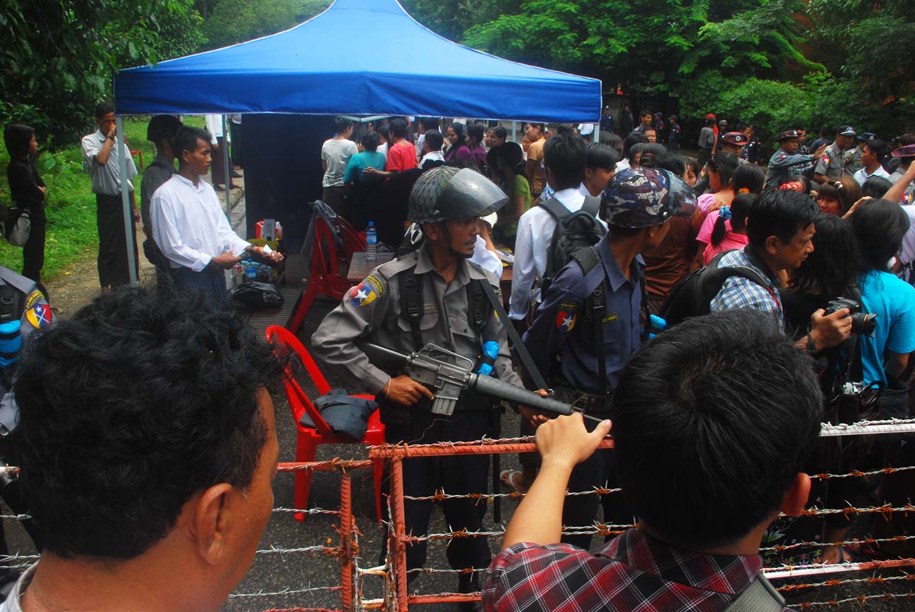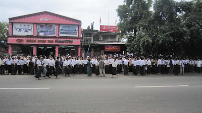 ၾကံ့ဖြံႊအစုိးရတက္ျပီး ရက္ ၁၀၀ ေက်ာ္ ကာလမွာ လူစုလူေ၀းနဲ႔ ခ်ီတက္အေလးျပဳခြင့္ရျပီး ယမန္ေန႔ မနက္ပိုင္း ရန္ကုန္ျမိဳ႔ ေနရာေတာ္ေတာ္မ်ားမ်ားမွာ လုံျခဳံေရးအေစာင့္ကားေတြ၊ မီးသတ္ကားေတြနဲ႔ လူစုလူေ၀းကိုျဖိဳခြဲဖို႔ အသင့္ျပင္ထားတာကို ေတြ႔ေနရပါတယ္။