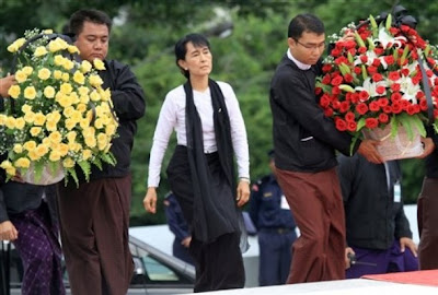 က်ေနာ့္အျမင္ကိုေျပာရရင္ေတာ့ ေဒၚေအာင္ဆန္းစုၾကည္ရဲ႕့နာမည္နဲ႔ လြမ္းသူ႔ပန္းေခြကို မေတြ႕့ရတာ အင္မတန္ ထူးျခားပါတယ္။ ေဒၚစုအေနနဲ႔ သူ႔့ဖခင္အတြက္ လြမ္းသူ႔ပန္းေခြခ် ခ်င္ပါလိမ့္မယ္။ တေလာက ဆရာပါရဂူရဲ႕ နာေရးမွာေတာင္ ေဒၚစုရဲ႕ပန္းျခင္းကို က်ေနာ္ ေတြ႔လိုက္ရပါေသးတယ္။ ဗိုလ္ခ်ဳပ္ရဲ႕ႏွစ္ပတ္လည္မွာ ဗိုလ္ခ်ဳပ္ သမီး ေဒၚေအာင္ဆန္းစုၾကည္အေနနဲ႔ သူ႔အေဖအတြက္ လြမ္းသူ႔ပန္းေခြခ်၊ ဂါရ၀ျပဳခ်င္မွာ ေျမႀကီးလက္ခတ္ မလြဲပါဘဲ။