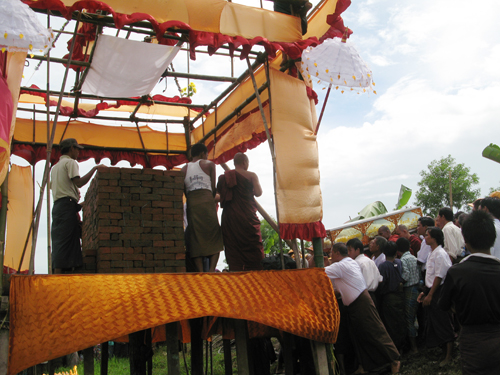 အႏိၲမစ်ာပနအခမ္းအနားအား (၁၂း၀၀) နာရီအခ်ိန္တြင္ စတင္က်င္းပခဲ့ရာ ၀ဲျပန္ေက်ာင္းတိုက္မွ (၂) မိုင္အကြာ၌႐ွိေသာ ေလာင္တိုက္႐ွိရာေနရာသို႔ သံုးခြနာေရးအသင္းသူ/သားမ်ား၊ ၿမိဳ႕မိ/ဖမ်ား၊ ရပ္မိ/ဖမ်ား၊ ဆရာေတာ္ႀကီး၏ တပည့္ဒါယကာ ဒါယကာမမ်ား၊ ဆရာေတာ္သံဃာေတာ္မ်ားႏွင့္ စည္ကားသိုက္ၿမိဳက္စြာျဖင့္ နယ္ဓေလ့အတိုင္း (မီး႐ႈးမီးပန္းမ်ား၊ ေျဗာက္အိုးမ်ား) ေဖာက္၍ ေျခလ်င္ျဖင့္ ပို႔ေဆာင္၍ က်င္းပခဲ့ၾကသည္။