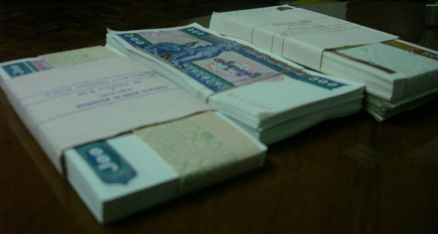 ေငြအေၾကြ (ေငြအေၾကြဆိုလို႕ အေၾကြေစ့ေတြ မထင္နဲ႕ဦး။ ၂၀၀တန္၊ ၁၀၀ တန္၊ ၅၀ တန္ကို ဆိုလိုတာ)။ ၂၀၀တန္၊ ၁၀၀ တန္၊၅၀ တန္ တအုပ္စီ လခေငြေပးတဲ့ထဲ ထည့္ေပးပါသတဲ့။ ပလပ္စတစ္အိတ္ေတြနဲ႕ထည့္ ေဆးလိပ္မီးနဲ႕ ပိတ္ၿပီး သံုးေနရတဲ့ မသတီစရာ ေငြြစကၠဴေတြအစား အခုလို အသစ္ေလးေတြ ထုတ္ေပးတာေတာ့ ေကာင္းတယ္လို႕ ဆိုရမွာေပါ့ေလ။ သၾကားလံုး၊ တစ္သွ်ဴးစကၠဴထုပ္ေတြ အစားထိုး ေပးတဲ့စနစ္လည္း ေလ်ာ့ပါး သြားမယ္ ထင္ရဲ႕။ တလတည္း ေပးမွာလား၊ လိုသေလာက္ဘဏ္မွာသြားလဲလွယ္လို႕ရသလားဆိုတာေတာ့ မသိရေသးဘူး။