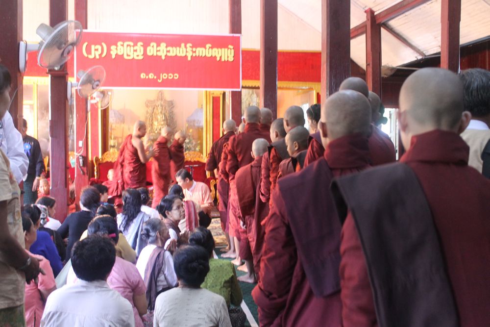 အခမ္းအနားမွာ ေဒၚေအာင္ဆန္းစုၾကည္နဲ႔ ေက်ာင္းသားေခါင္းေဆာင္မ်ားက ဆရာေတာ္၊ သံဃာေတာ္မ်ားကို ၀ါဆိုသကၤန္းဆက္ကပ္ လွဴဒါန္းၾကကာ ေရစက္ခ် တရားနာယူ ခဲ့ၾကေၾကာင္း သတင္းရရွိပါတယ္။