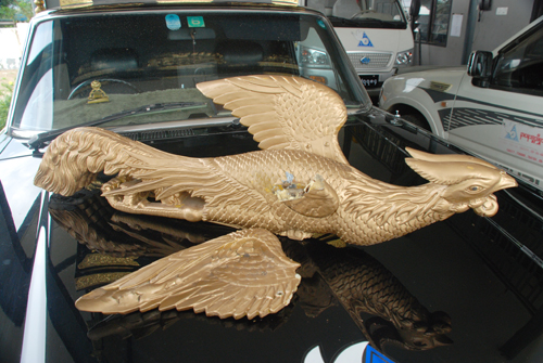 နာေရးကူညီမႈအသင္း(ရန္ကုန္)႐ွိ ဂ်ပန္ႏိုင္ငံတြင္ အသံုးျပဳလွ်က္႐ွိေသာ နာေရးပို႔ေဆာင္ေရး ယာဥ္၏ ေခါင္မိုးေပၚတြင္ ထုိဇာမဏီငွက္ကို ေ႐ႊခ်ကာ အျမတ္တႏိုး အထြဋ္အထိပ္တြင္ ထား႐ွိလွ်က္႐ွိသည္။