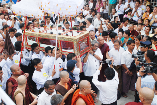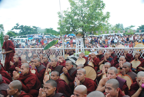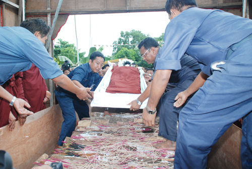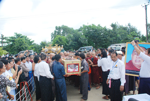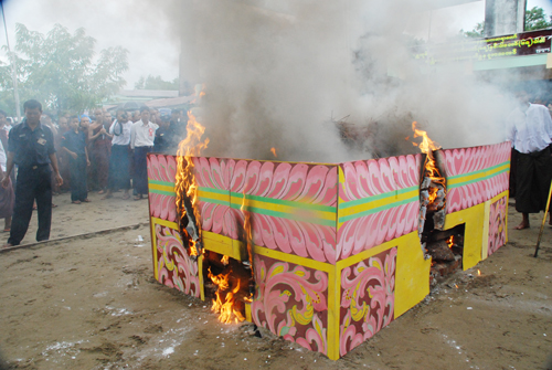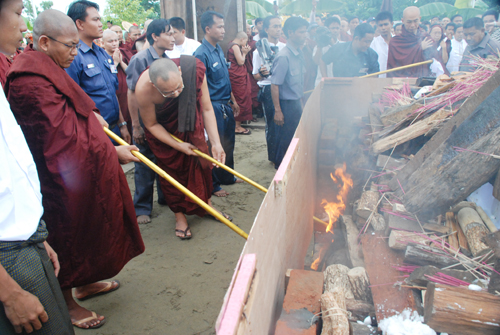 ယင္းအခမ္းအနားတြင္ ႏိုင္ငံေတာ္ၾသဝါဒစရိယ ဆရာေတာ္ႀကီးမ်ား၊ ဓမၼဒူတ ဆရာေတာ္မ်ား၊ တပည့္သံဃာေတာ္မ်ား၊ သီလ႐ွင္မ်ားႏွင့္ တပည့္ဒါယကာ၊ ဒါယကာမမ်ားလိုက္ပါ ပို႔ေဆာင္ၾကကာ ေရေဝးသုႆန္ ကားဝင္းတြင္ ေလာင္တိုက္ျပဳလုပ္၍ အႏိၲမ အဂိၢစ်ာပနအခမ္းအနားအား ထူးျခားစြာ က်င္းပျပဳလုပ္ခဲ့သည္။