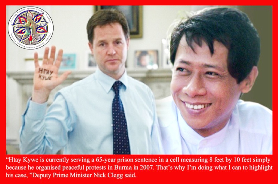 ၈၈မ်ဳိးဆက္ေက်ာင္းသားေခါင္းေဆာင္ ကုိေဌးၾကြယ္ လြတ္ေျမာက္ေရး လႈပ္ရွားသူမ်ားထဲတြင္ ျဗိတိန္ဒု၀န္ႀကီးခ်ဳပ္ Nick Clegg လည္း ပါ၀င္လာသည္။ သူက ကုိေဌးၾကြယ္၏ အမည္ကုိ သူ၏ လက္ဖ၀ါးတြင္ ေရးသားျပီး ဓာတ္ပုံအရုိက္ခံခ့ဲသည္။ ဤက့ဲသုိ႔ေသာ လႈံ႔ေဆာ္သည့္ ဓာတ္ပုံမ်ားကုိ မီဒီယာမ်ား၊ အက်ဥ္းသားလြတ္ေျမာက္ေရး လႈပ္ရွားမႈမ်ားတြင္ အသုံးျပဳၾကမည္ ျဖစ္သည္။