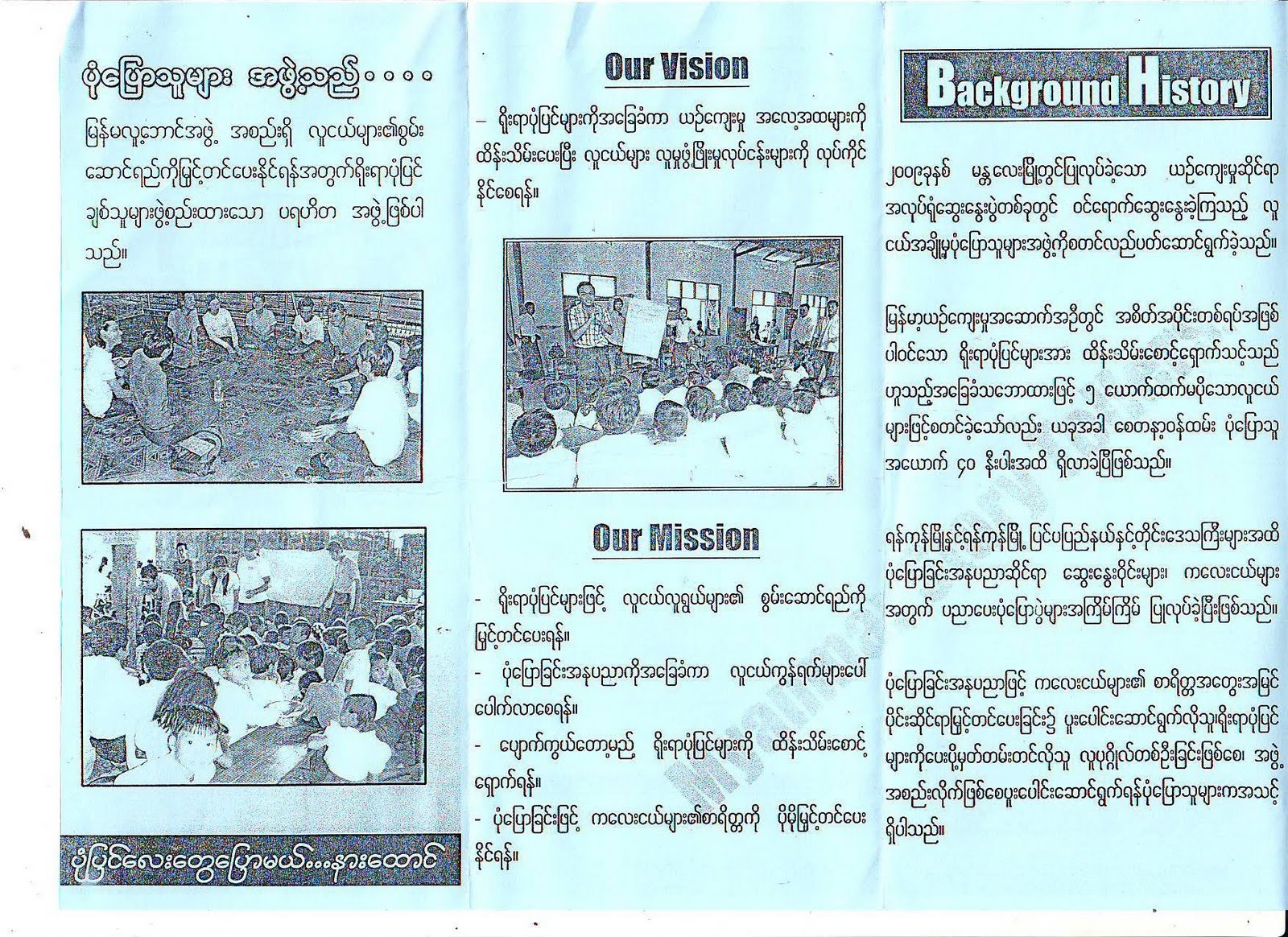 အဖြဲ႔ ေရရွည္ ရပ္တည္နိုင္ေအာင္ အျခား အဖြဲ႔အစည္းႀကီးေတြ၊ ကိုယ့္ထက္ အေတြ႕အႀကဳံ အမ်ားႀကီး ရွိတဲ့ အဖြဲ႔အစည္းေတြက Capacity ျမွင့္ေပးနိုင္မယ့္ ဘာသာရပ္ ဆိုင္ရာ သင္တန္းေတြ တက္ဖုိ႔ ကမ္းလွမ္းလာရင္ အဖြဲ႔ဝင္ေတြ လႊတ္ၿပီး တက္ခိုင္းတာမ်ိဳးလည္း ရွိပါတယ္။ ဒါကို ရင္းႏွီးျမွဳပ္ႏွံမႈ တစ္ခုလုိ႔ သေဘာ ထားတဲ့ ပံုေျပာသူမ်ား အဖြဲ႔က “အရင္တုန္းက ဆိုရင္ အဖြဲ႔မွာ တကယ္လုပ္တဲ့ ေလး၊ ငါးေယာက္ မရွိရင္ Activity ေတြ မလုပ္နိုင္ဘူး။ အဲဒီလိုမ်ိဳး မျဖစ္ရေအာင္ အဖြဲ႔ဝင္ေတြ အားလံုးကို Capacity ျမွင့္ေပးနိုင္မယ့္ သင္တန္းေတြ တက္ဖုိ႔ အကူအညီ ေပးလာရင္ ယူတယ္။ ေနာက္ပိုင္း အခုလို ဆက္ၿပီး သြားေနနိုင္တာ အဲဒီ အက်ိဳးေက်းဇူးေတြေၾကာင့္ပါပဲ” လုိ႔ေျပာပါတယ္။ အဖြဲ႔ဝင္ေတြ ၾကားထဲမွာ အခ်င္းခ်င္း အျပန္အလွန္ သင္ယူၾကတယ္။ ဘာ Activity တစ္ခုမွ မရွိလည္း တစ္လတစ္ခါ ဆံုၾကၿပီး၊ တစ္လလံုး လုပ္ခဲ့တဲ့ အလုပ္ေတြကို ျပန္သံုးသပ္ၾကတယ္။ လိုအပ္တာေတြကို ဝိုင္းဝန္း အၾကံဉာဏ္ ေပးၿပီး ျဖည့္ၾကတယ္။