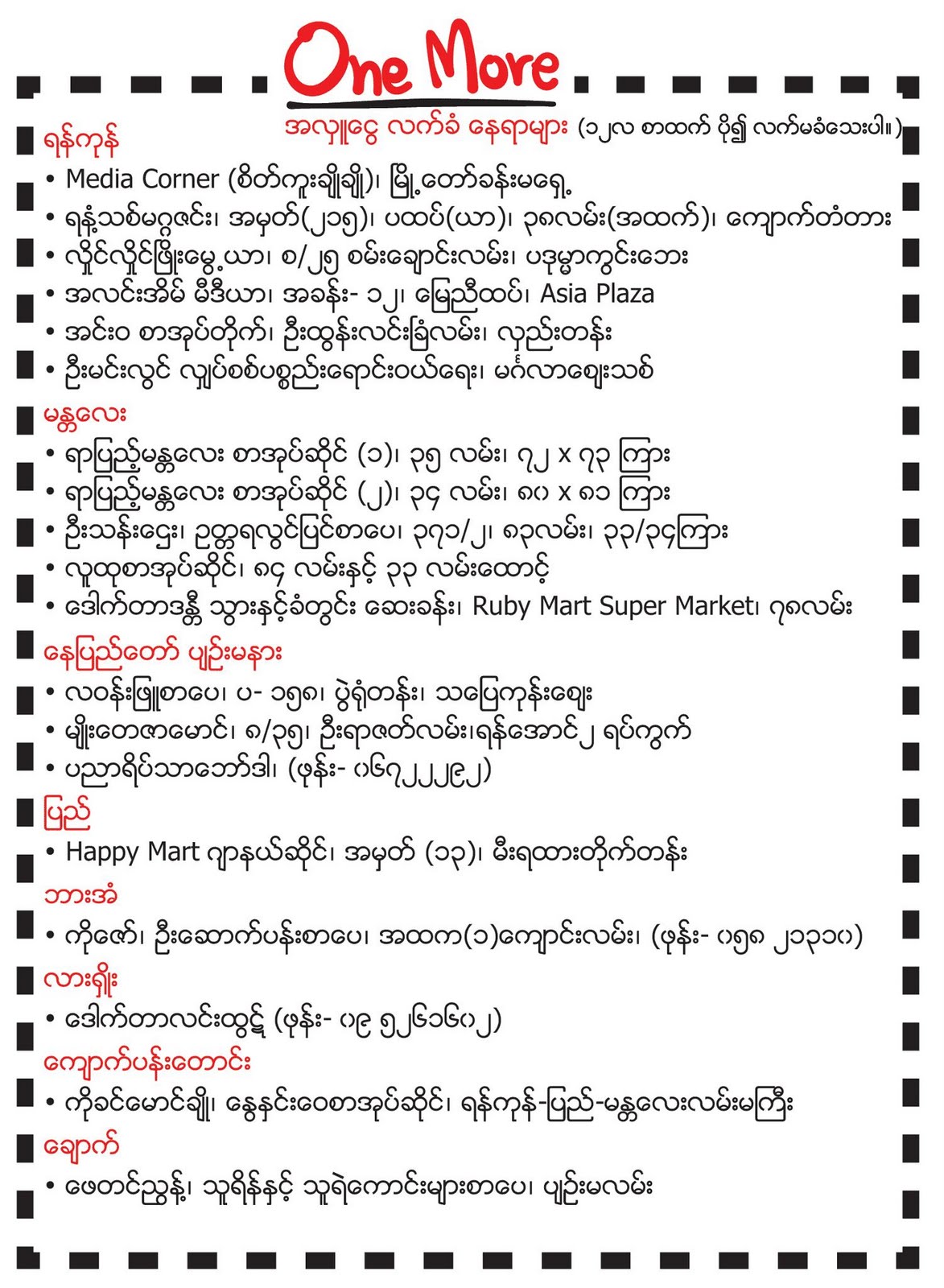 လူတဦး၊ တလ၊ ေငြ ၁ေထာင္ အလွဴ – One More အလွဴလုပ္ငန္း ျမန္မာျပည္မွာစျပီ