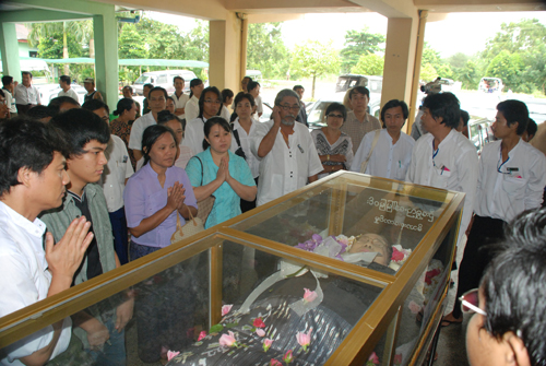 ေက်းဇူး႐ွင္ စာေရးဆရာ၊ ဒါ႐ိုက္တာ၊ နာယကႀကီး ဘဘဦးသုခ ကမ႓ာေျမျပင္မွ ထြက္ခြာသြားခဲ့သည္မွာ ၆ ႏွစ္တာကာလအတြင္းသို႔ ေရာက္႐ွိခဲ့ၿပီျဖစ္သည္။ ဘဘဦးသုခ သက္႐ွိထင္႐ွား႐ွိစဥ္ တိုင္းျပည္အက်ိဳး၊ ဘာသာ သာသနာအက်ဳိး၊ အမ်ားျပည္သူတို႔၏ နာေရးကိစၥ အဝဝကို ေခ်ာမြတ္အဆင္ေျပရန္ ဖြဲ႔စည္းတည္ေထာင္ခဲ့ေသာ နာေရးကူညီမႈအသင္း(ရန္ကုန္) စသည့္ လူမႈေရးစြမ္းေဆာင္ခ်က္မ်ားကို ဘဘဦးသုခ၏ နံေဘးမွ ပါရမီျဖည့္ဆည္းေပးခဲ့ေသာ ဘဘဦးသုခ၏ ဇနီး ေဒၚက်င္ေမ အသက္ ၈၁ ႏွစ္သည္ ၂၇. ၈. ၂၀၁၁ စေနေန႔ နံနက္ ၀၂း၀၀ နာရီအခ်ိန္တြင္ စံျပေဆး႐ံုႀကီး၌ ကြယ္လြန္သြားပါ၍ နာေရးကူညီမႈအသင္း(ရန္ကုန္)မွ ဥကၠ႒ ဦးေက်ာ္သူကိုယ္တိုင္ သြားေရာက္၍ မိခင္ႀကီး ေဒၚက်င္ေမ၏ ႐ုပ္အေလာင္းအား ေရေဝးသုႆန္ အေအးခန္းသို႔ ပို႔ေဆာင္ ကူညီေဖးမေပးခဲ့သည္။