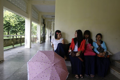 ေသာၾကာေန႔က ရန္ကုန္နည္းပညာတကၠသုိလ္တြင္ ေတြ႔ရေသာ စုပုံခ်စ္ နွင့္ အတန္းေဖာ္မ်ား (ဓာတ္ပုံ- Reuters သတင္းဌာန)