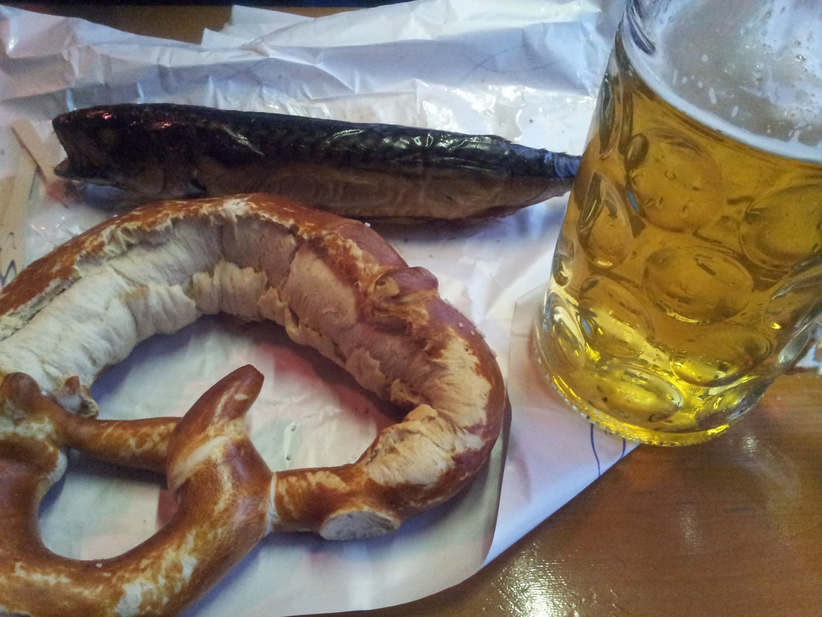 | ရိုးရာအစားအစာ Bretzel ရယ္ ငါးကင္ရယ္ တလီတာဘီယာမတ္ခြက္ |