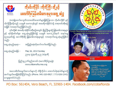 ၈၈မ်ဳိးဆက္ ေက်ာင္းသားေခါင္းေဆာင္ မင္းကိုုႏိုုင္၊ ကိုုကိုုၾကီးတိုု႔ႏွင့္ ဆန္ဖရန္ျမန္မာမိသားစုုမ်ား ေတြ႔ဆုုံပြဲ – ဇြန္ ၁၊ စေနေန႔၊ ေဒလီးစီးတီး Little Theater  ဖိတ္စာ ထြက္ရွိ
